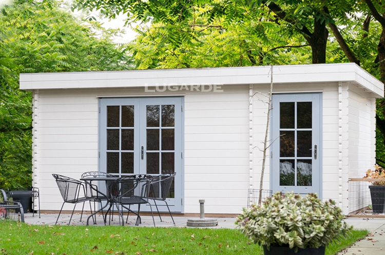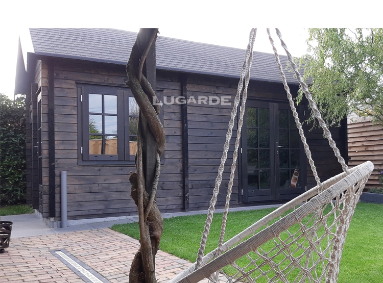 Een blokhut van 6x4 meter kan ook fungeren als een stijlvol tuinkantoor. Met zijn royale afmeting van 600x400 cm heeft u alle ruimte om te werken, terwijl u geniet van de rust van de natuur. Als u de blokhut wilt gebruiken als houten garage, kunt u aan de kopse kant van 4 meter brede houten garage deuren, een kanteldeur of een elektrische sectionaaldeur laten plaatsen. Zo kunt u uw auto of aanhanger eenvoudig binnenrijden.