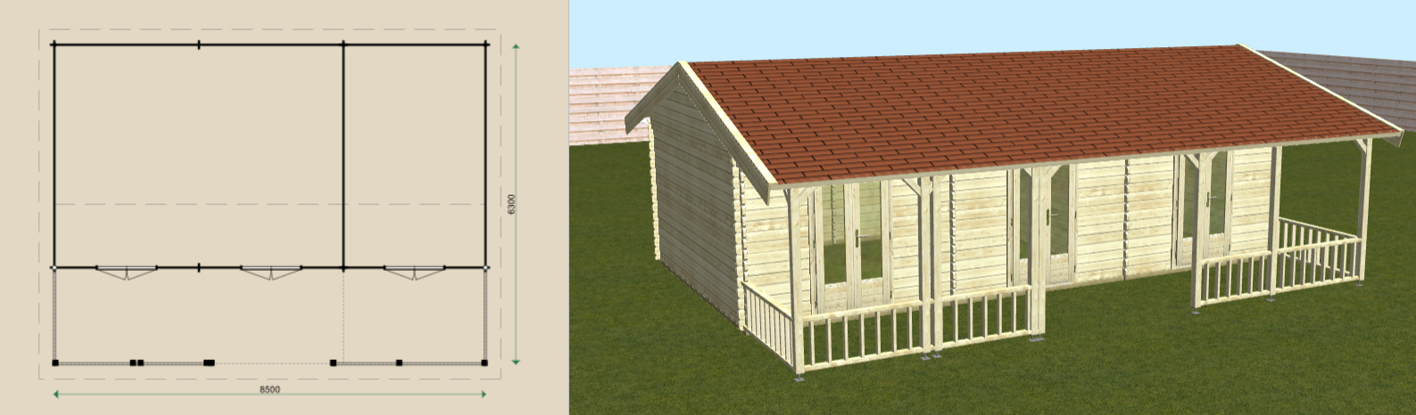 Ontwerp zelf deze Lugarde blokhut zoals u het wenst. Zo krijgt u een uitstekend 3D beeld hoe de blokhut eruit komt te zien en wat de mogelijkheden zijn.