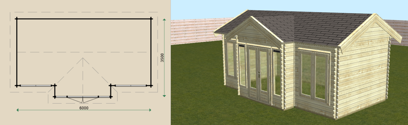 Ontwerp zelf deze Lugarde blokhut zoals u het wenst. Zo krijgt u een uitstekend 3D beeld hoe de blokhut eruit komt te zien en wat de mogelijkheden zijn.