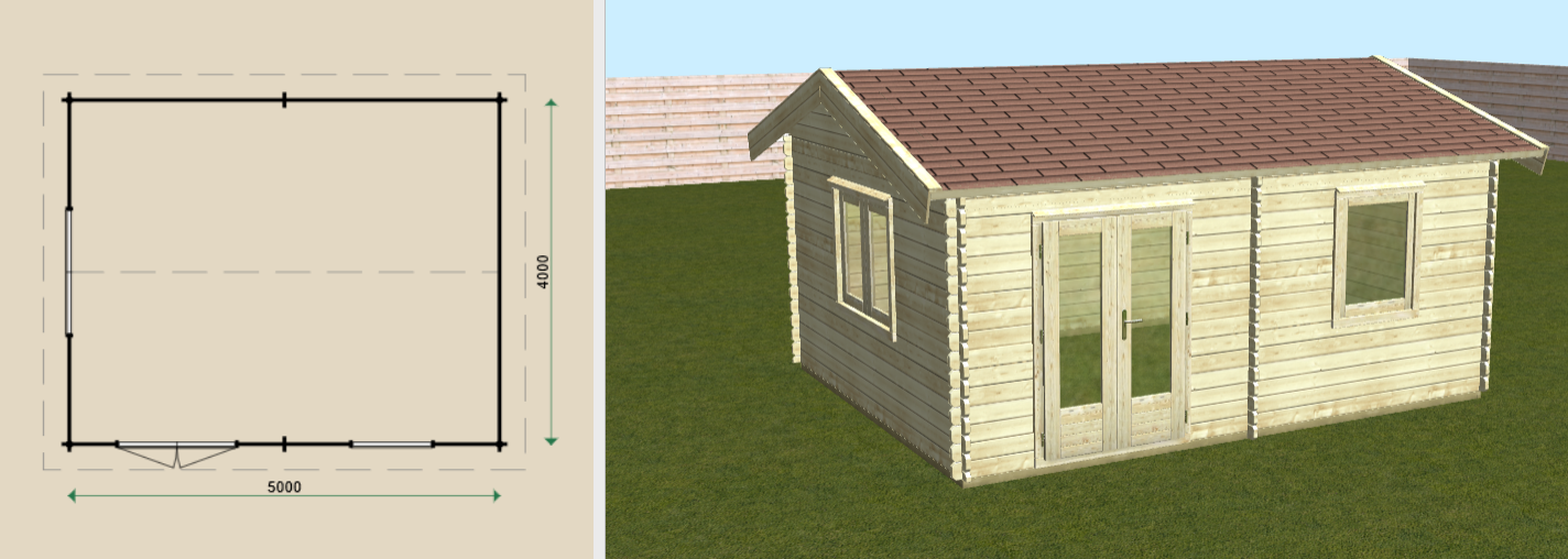 Ontwerp zelf deze Lugarde blokhut zoals u het wenst. Zo krijgt u een uitstekend 3D beeld hoe de blokhut eruit komt te zien en wat de mogelijkheden zijn.