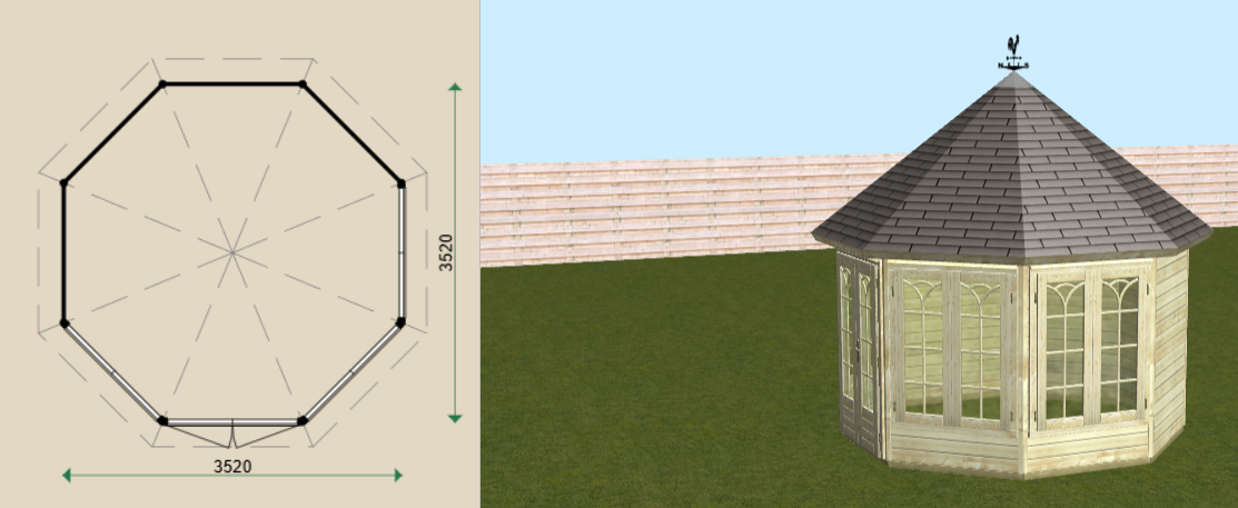 Bekijk het tuinhuis van alle kanten in 3D