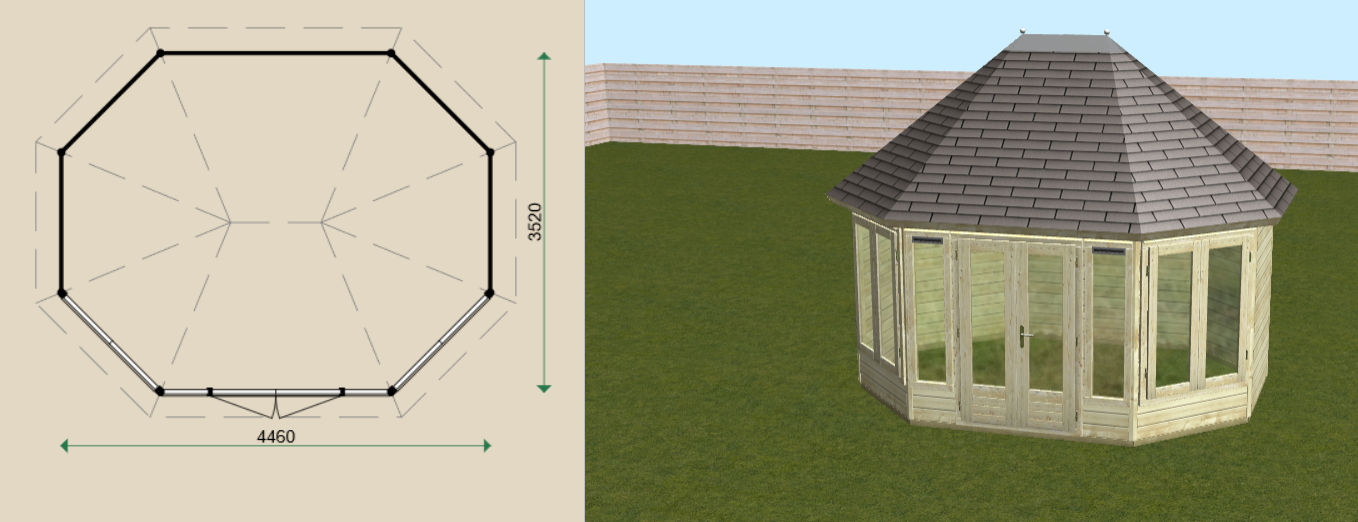 Ontwerp nu dit tuinhuis geheel naar eigen wens in de 3D-configurator en bereken direct uw prijs voor dit model