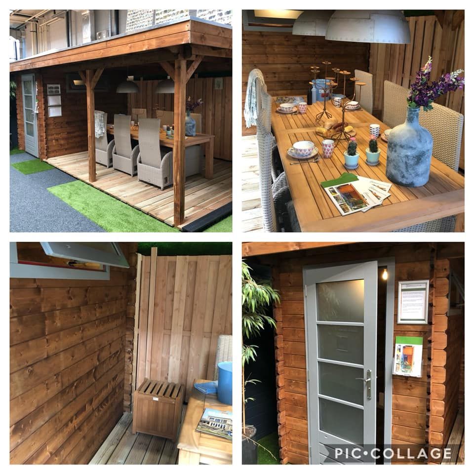 In onze overdekte, verwarmde showroom in Capelle aan den IJssel heeft u de mogelijkheid om samen met één van onze adviseurs uw (maatwerk) tuinhuis, blokhut, houten chalet of overkapping geheel vrijblijvend te ontwerpen in een 3D tekening. Hierdoor krijgt u een duidelijk beeld van uw maatwerk blokhut en ziet u hoe deze er in de praktijk uit komt te zien. Belangrijke details zoals soorten daken, indeling, wandhoogte, positie van ramen en deuren etc. kunt u zo nog specifieker maken waardoor u een compleet beeld krijgt. Aan de hand van deze tekening ontvangt u vrijblijvend een offerte volledig naar uw wensen.