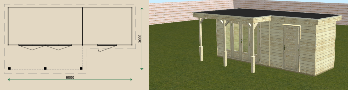 Ontwerp nu dit tuinhuis geheel naar eigen wens in de 3D-configurator en bereken direct uw prijs voor dit model