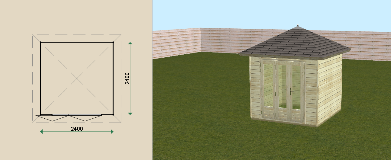 Ontwerp nu dit tuinhuis geheel naar eigen wens in de 3D-configurator en bereken direct uw prijs voor dit model