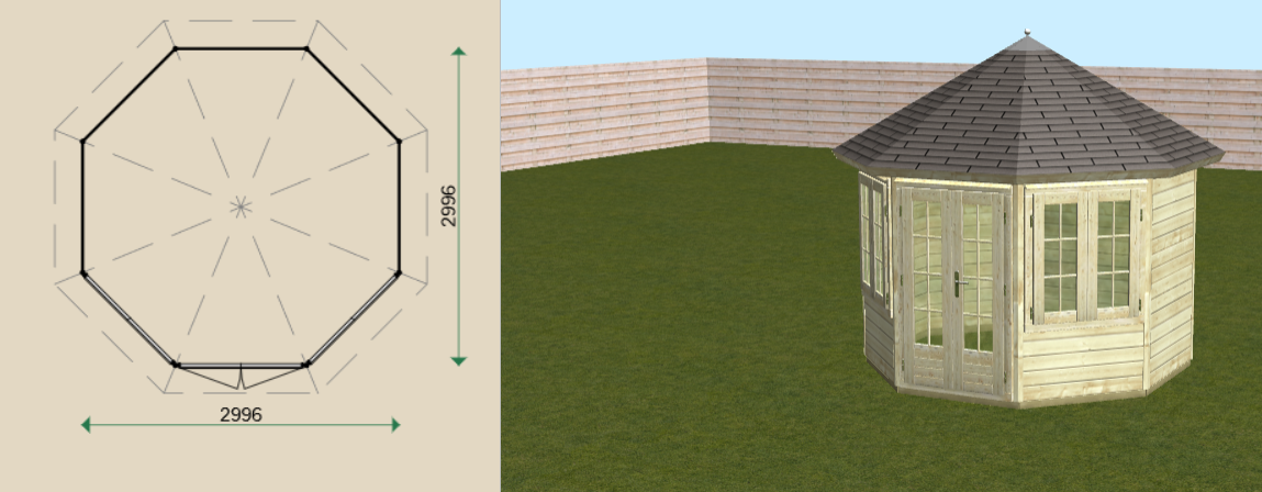 Ontwerp nu dit tuinhuis geheel naar eigen wens in de 3D-configurator en bereken direct uw prijs voor dit model