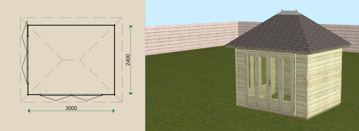 Ontwerp nu dit tuinhuis geheel naar eigen wens in de 3D-configurator en bereken direct uw prijs voor dit model
