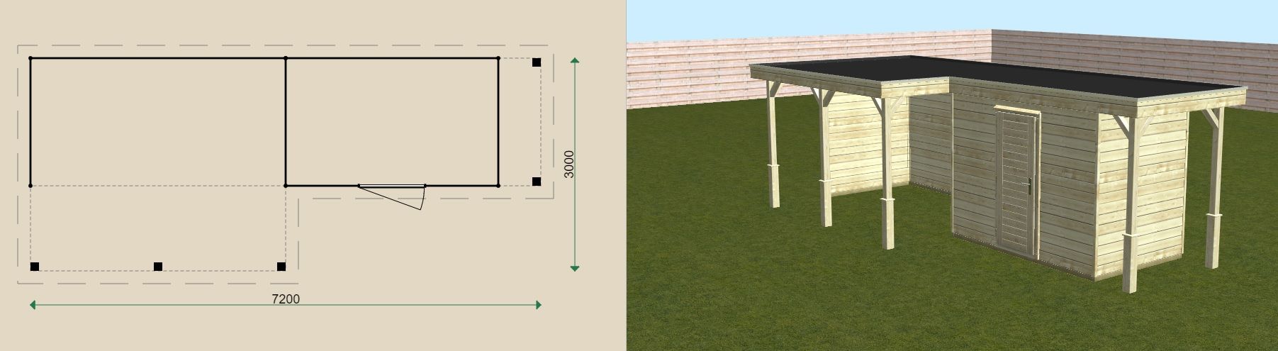 * Mogelijke dieptematen tuinhuis (zijkant): 180, 240, 300, 360 en 420 cm
