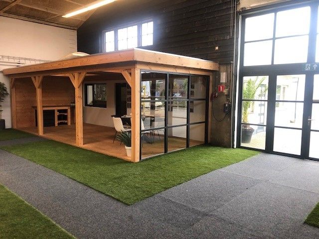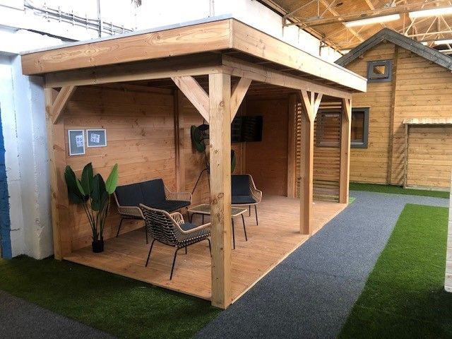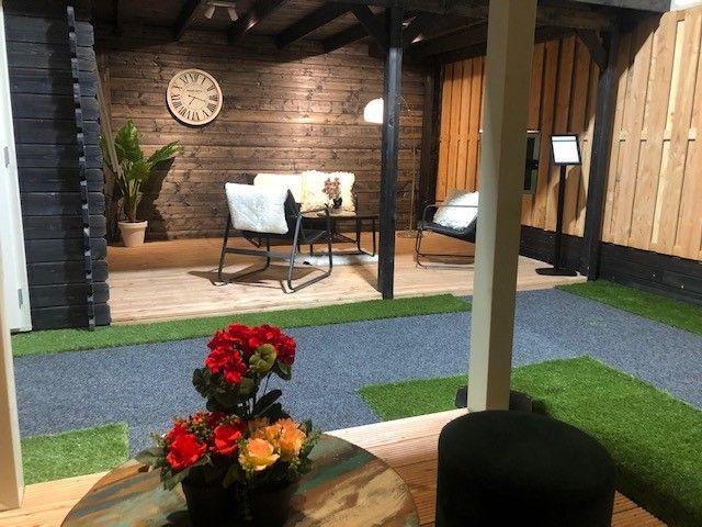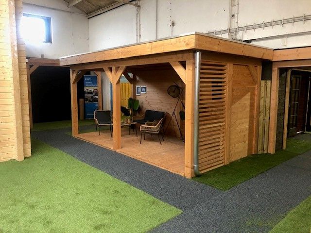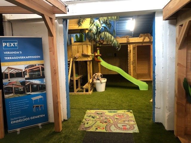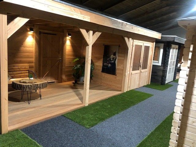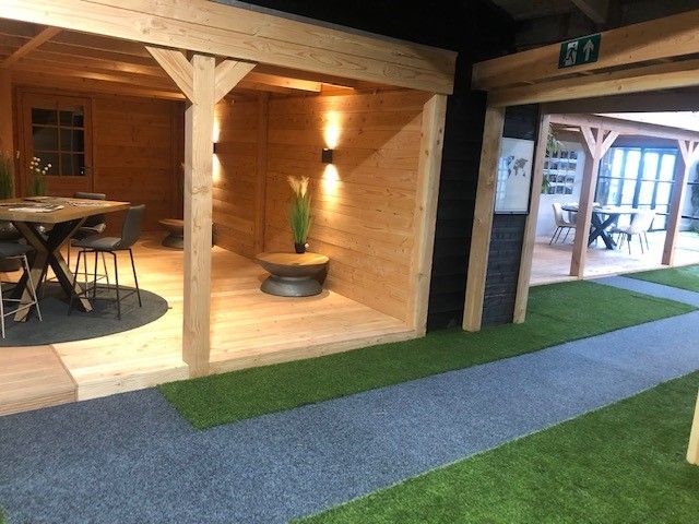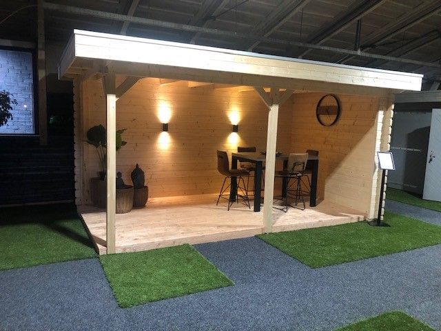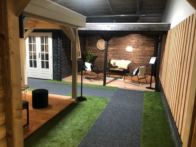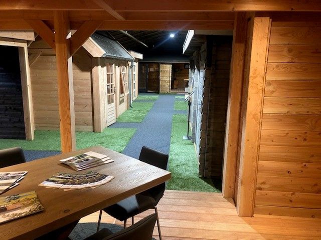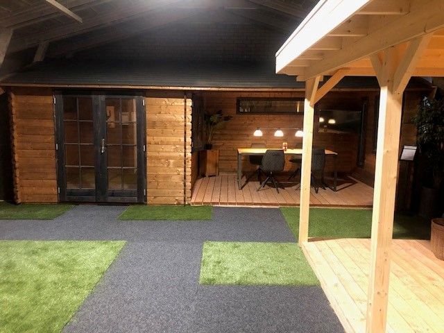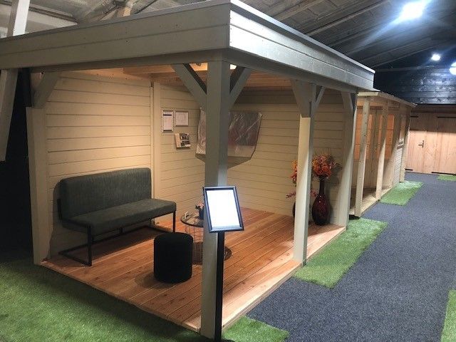 In onze overdekte showroom van ca. 1500 m2 in Zevenaar Gelderland gelegen vlak aan de A12 in de buurt van Arnhem, Nijmegen, Doetinchem, Zutphen en Ede hebben we ca. 30 showmodellen opgebouwd staan zoals een tuinhuis, blokhut, overkapping, veranda, recreatiewoning en houten garage op maat.