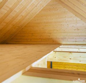 U kunt bij Lugarde kiezen voor een optionele zoldervoer bestaande uit balken en planken met veer en groef. Voot extra ruimte op de zolder, zou u er voor kunnen kiezen om de dakhelling te verhogen of de wanden hoger uit te laten voeren. Daarnaast kunt u optioneel ook voor een ladder kiezen.