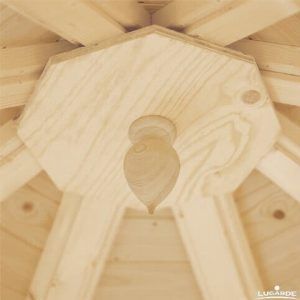 Een andere dak is het piramidedak, ook wel puntdak genoemd, en wordt aan de binnenzijde netjes afgewerkt met een houten sierknop. Door de veer en groef van Lugarde past dit dak precies. Voor de metalen afdekking van het dak worden hoge kwaliteit staalplaten gebruik (15 mm dikte). Om lekkage te voorkomen wordt de staalplaten afdekking geheel aan elkaar gelast. Handgemaakt, individueel getest, en omhet dak er glas uit te laten zien worden ze daarna gepoedercoat.