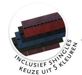 Het zadeldak bestaande uit veer en groef wordt inclusief de gordingen geleverd. Daarnaast worden er kosteloos veel extra's meegeleverd zoals een compleet pakket met metalen onderdelen, bevestigingsmaterialen, dakshingles en boeidelen. Bij het zadeldak van Lugarde kunt u kosteloos kiezen uit de kleuren zwart, rood, groen en blauw en ontvangt u een mooie afdekking voor de nok met het logo van Lugarde er op.