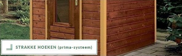 3. Prima systeem: Aluminium hoekprofielen incl. houten afwerklat waar wandplanken 28 mm of 44 mm tussen worden bevestigd.