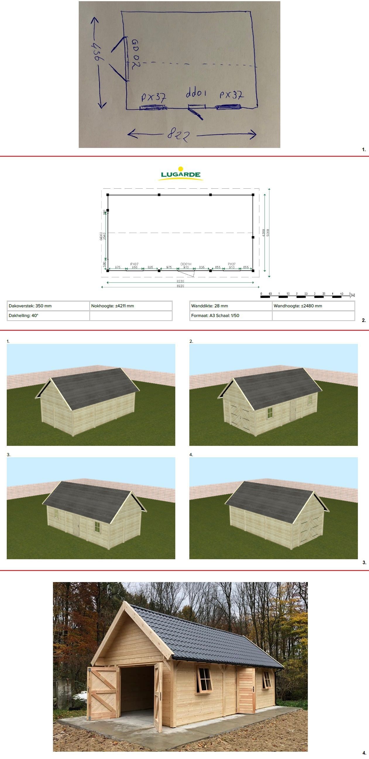 Hieronder een stappenplan hoe wij te werk gaan. Na het ontvangen van de eenvoudige schets met uw wensen, zullen wij u een gespecificeerde offerte toesturen incl. aanzicht tekening: